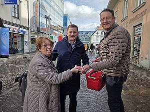 Anlässlich zum Valentinstag hat die SPÖ Leoben gemeinsam mit Bürgermeister Kurt Wallner an die Leobenerinnen und Leobener eine kleine Aufmerksamkeit verteilt.