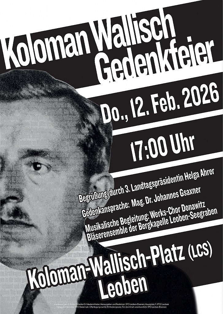 Koloman-Wallisch-Gedenken am 12. Februar 2026, 17 Uhr in Leoben