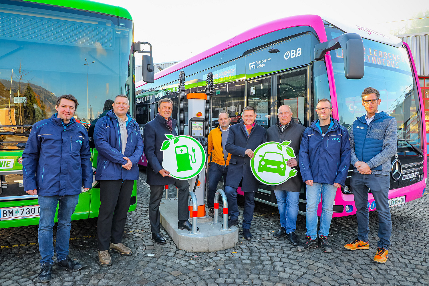 Mit Inbetriebnahme der sechs neuen E-Schnellladestationen setzen die Stadtwerke Leoben den nächsten Schritt für die vollständige, sukzessive Umrüstung der Busflotte auf einen emissionsfreien Betrieb.